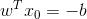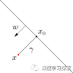 假定对于一个点 x ,令其垂直投影到超平面上的对应点为 x0 ,w 是垂直于超平面的一个向量,为样本x到超平面的距离,如下图所示:
