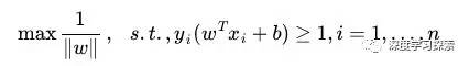 相当于在相应的约束条件下,最大化这个1/||w||值,而1/||w||便是几何间隔