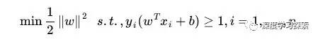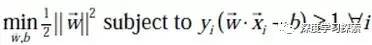 的最小值,所以上述目标函数等价于(w由分母变成分子,从而也有原来的max问题变为min问题,很明显,两者问题等价):