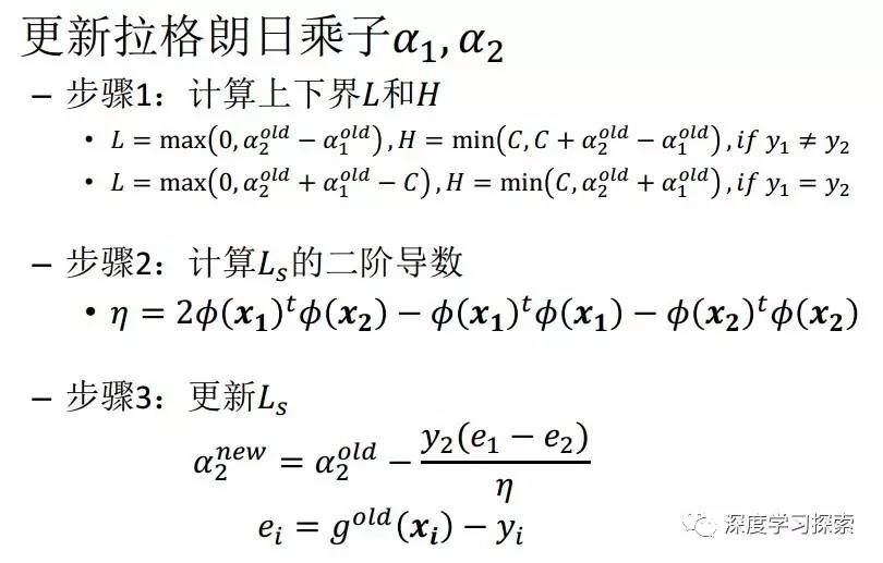 且每次更新完两个乘子的优化后,都需要再重新计算b,及对应的Ei值。
