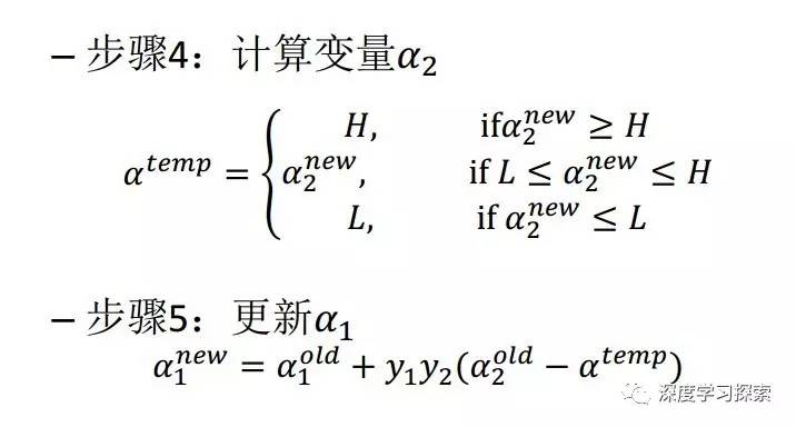 步骤2:在所有不违反KKT条件的乘子中,选择使|E1 −E2|最大的a2进行更新,使得能最大限度增大目标函数的值(类似于梯度下降. 此外,而