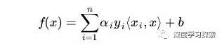 换言之,在进行分类的时候,遇到一个新的数据点x,将x代入f(x) 中,如果f(x)小于0则将x的类别赋为-1,如果f(x)大于0则将x的类别赋为1。