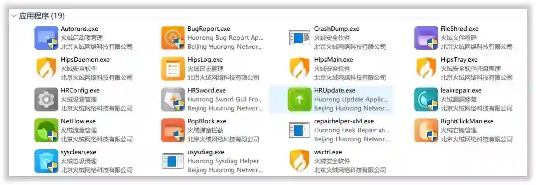 另外,打开火绒安全软件的安装目录,可以找到一些单独运行的小程序,并且用户能够将这些小程序设置为开机启动项。