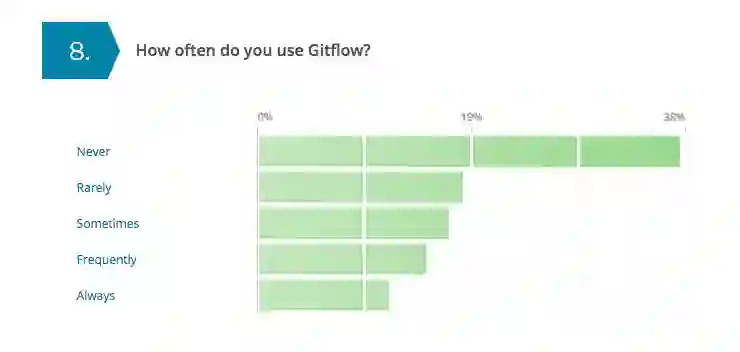 8.Git-where?几乎五分之二的开发人员从不使用Gitflow。