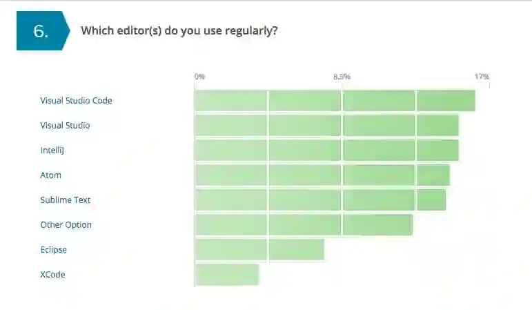 6. 六分之一的开发人员使用Visual Studio Code作为文本编辑器。