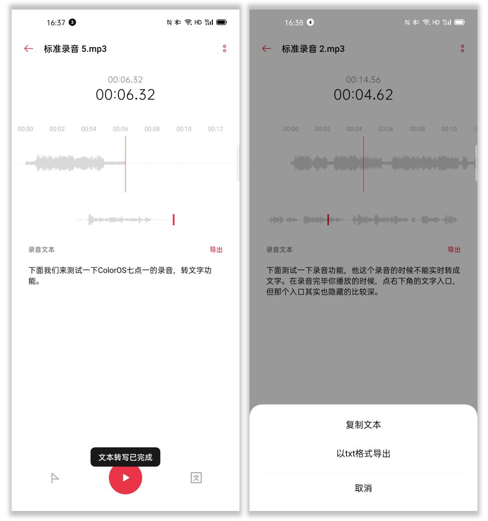 不过瑕不掩瑜,仅语音文字转录这一点,ColorOS 7.1 内置的录音应用就足以甩开各种功能简陋的第三方录音工具好长一段距离了。