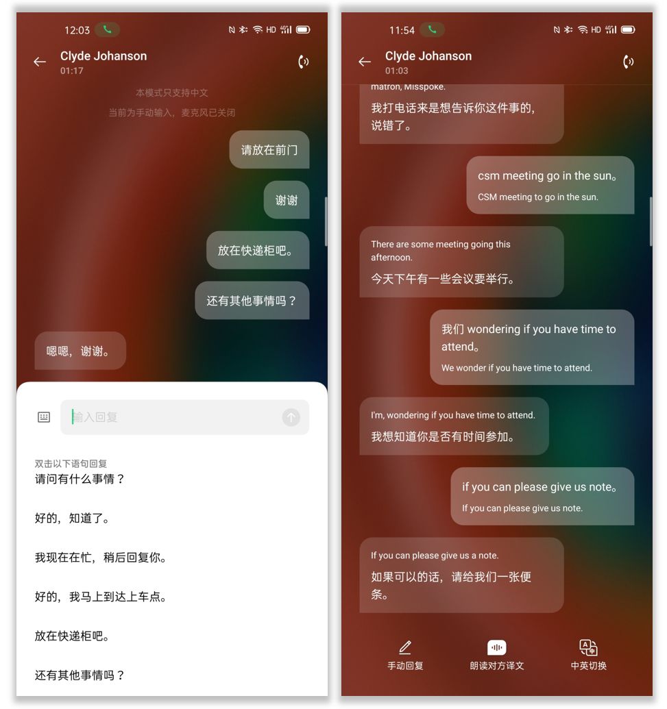 前者适用于那些生活中不便语音接听电话的场景,系统会将我们手动输入的文本自动转为语音内容告知拨号方,同时对方所说的内容也会转为文本呈现在通话界面当中。