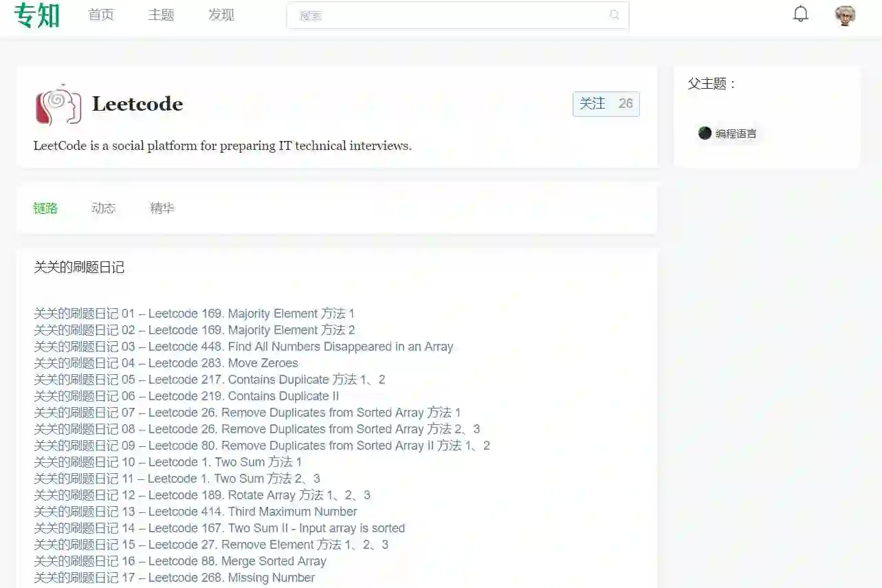 专知网站查看Leetcode刷题日记: