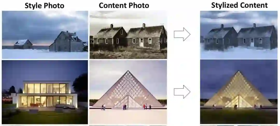 FastPhotoStyle 实现过程包含两个步骤:“风格化”和“细调”。 先将样式参考照片源的样式转移至目标照片,随后对其进行细调优化。