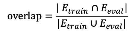 一个猜想是由于词典记忆,由于多语言 BERT 使用单个的多语言词典,所以当在微调期间出现的单词也出现在评估语言中时,这会发生一种跨语言的转换迁移,作者称这种现象为词汇重叠(overlap)。为了测量这个影响,作者计算了 E_train 和 E_eval ,分别表示训练集和测试集词汇集合,定义重叠计算公式: