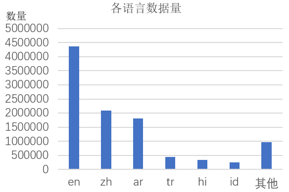 我们基于 XLM-R base 进行微调,采用领域数据二次预训练然后再进行任务微调的二阶段微调法。我们搜集了业务相关的数据,总共 1000 万数据量,包含多种语言,其中主要语言是 en(英文)、zh(中文)、ar(阿拉伯语)、tr(土耳其语)、hi(印地语)和 id(印度尼西亚语)。