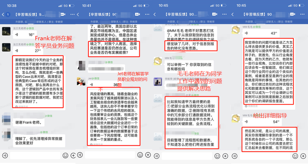 课程的主讲导师,每周会在班级群里给大家专门开小灶,通过语音直播的形式,帮助大家解决在工作中的具体产品/业务问题。