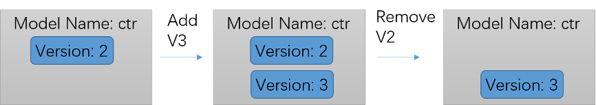 举例子来讲,如果只支持一个模型版本,当前版本是 2,如果有新的版本 3 加入,那么会先加载版本 3,然后再卸载版本 2。