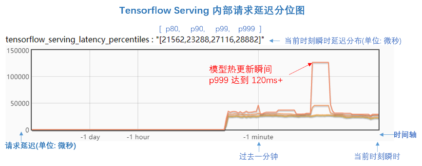 但是,随着业务对模型更新实时性的要求越来越高,我们发现,模型热更新时出现的短暂客户端请求超时现象(称之为毛刺现象)变成进一步提升实时性的一个比较大的障碍。