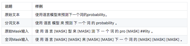 除以上外,本项目中文版,使用了全词mask(whole word mask)。在全词Mask中,如果一个完整的词的部分WordPiece子词被mask,则同属该词的其他部分也会被mask,即全词Mask。