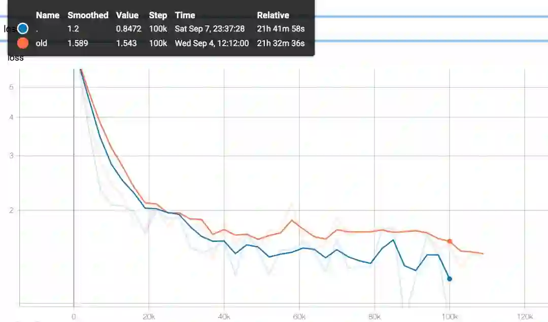 3、训练更久:总共训练了近20万,总共见过近16亿个训练数据(instance); 在Cloud TPU v3-256 上训练了24小时,相当于在TPU v3-8(128G显存)上需要训练一个月。