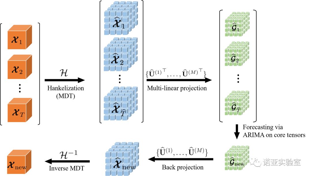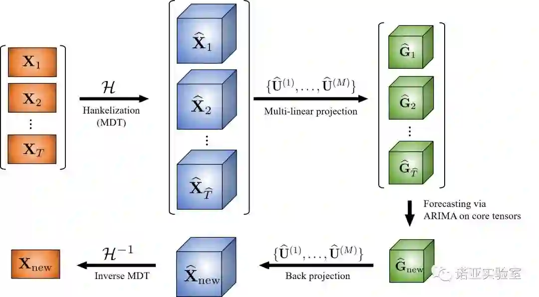 该研究借助多路延时变换技术将源时间序列数据增广为高阶张量,并巧妙将张量分解技术与经典时序预测模型ARIMA结合,进而提出了一种适用于多条时间序列的预测技术(BHT-ARIMA),尤其对于序列长度短、样本数量小的场景效果更佳。