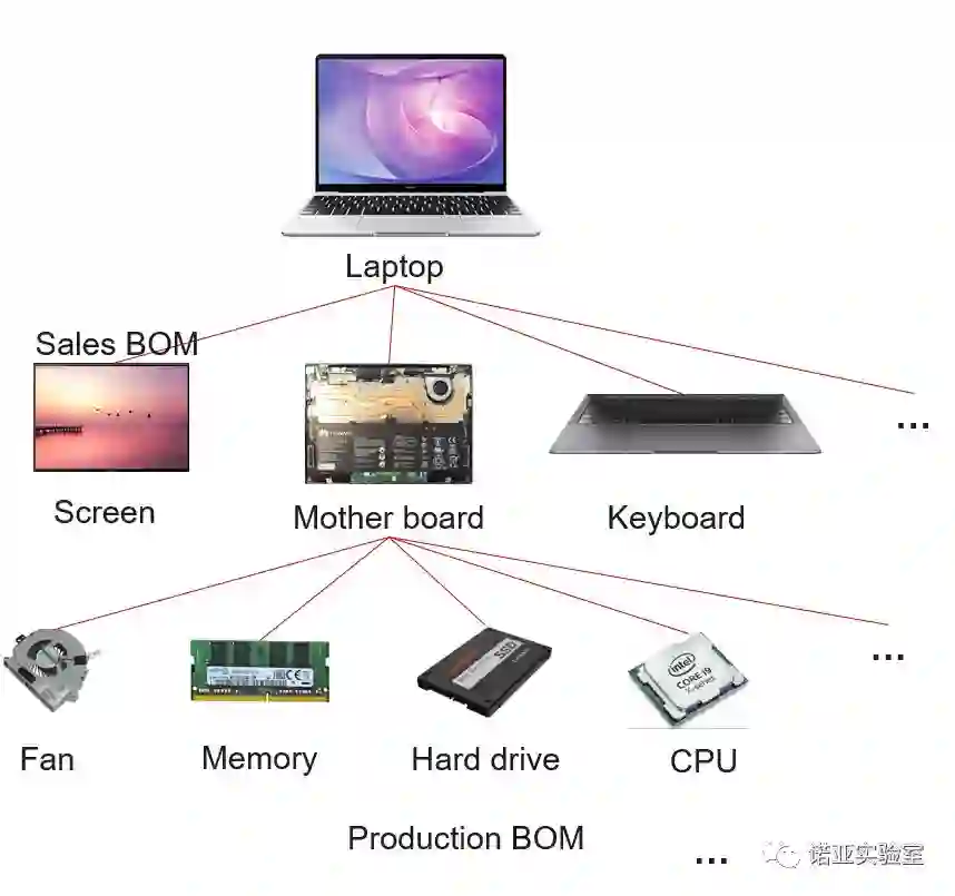 图1:生产一个产品比如一台Laptop所需的组件/原材料之间存在一定的内在关系。