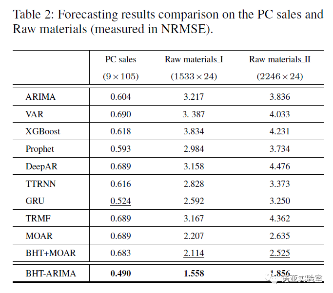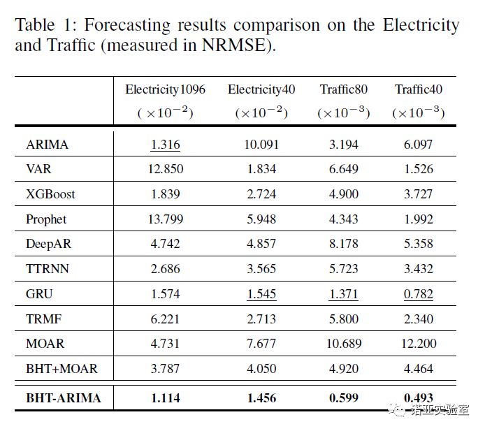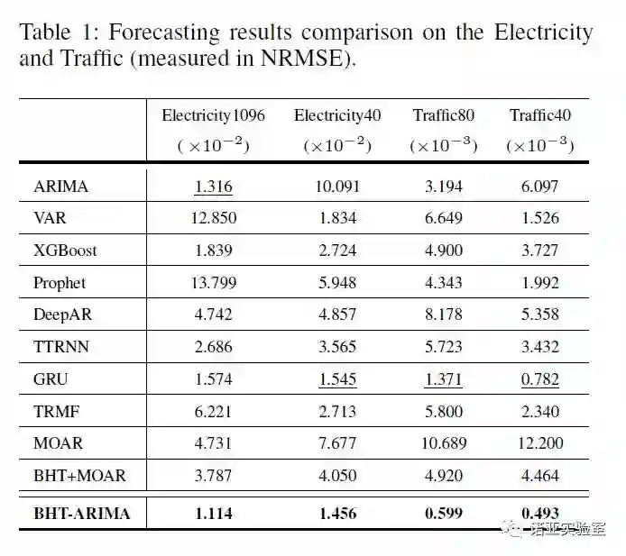 BHT-ARIMA 在四个数据集上超越所有对比的方法,且在较短/较小的时间序列上具有更多优势。
