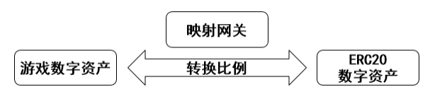 游戏数字资产与以太坊ERC20数字资产映射如下图所示:游戏金币支持通过映射网关与其他联盟链以及独立链进行资产转移。