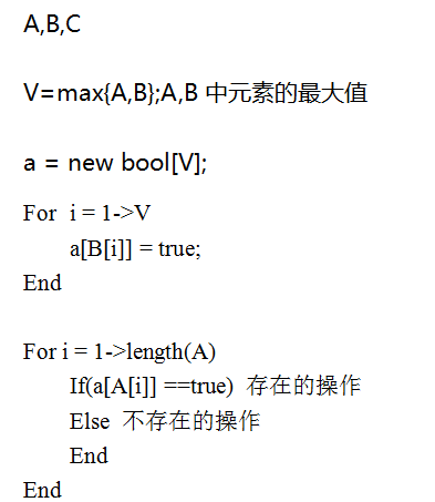 循环B,将B中值作为a的下标,对应位置标记为true,例如