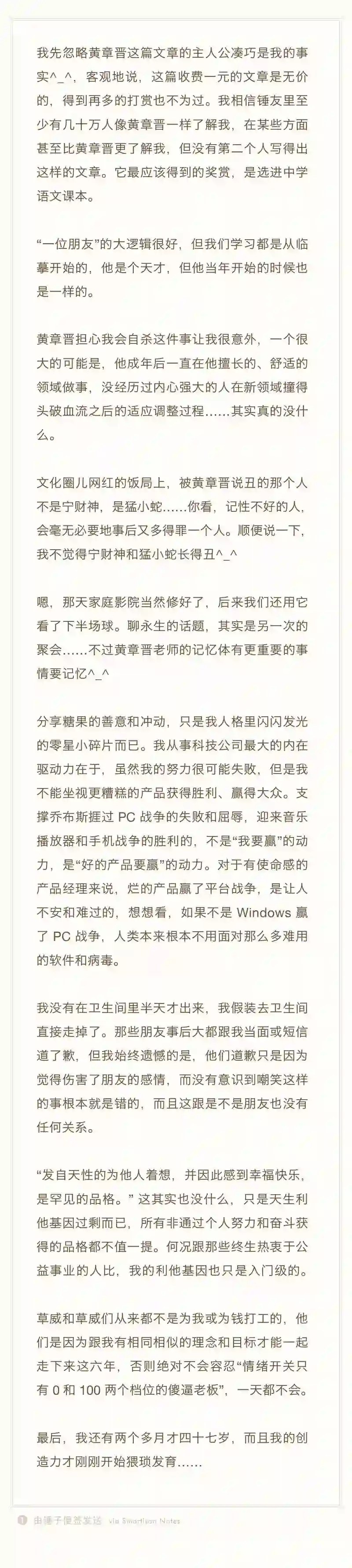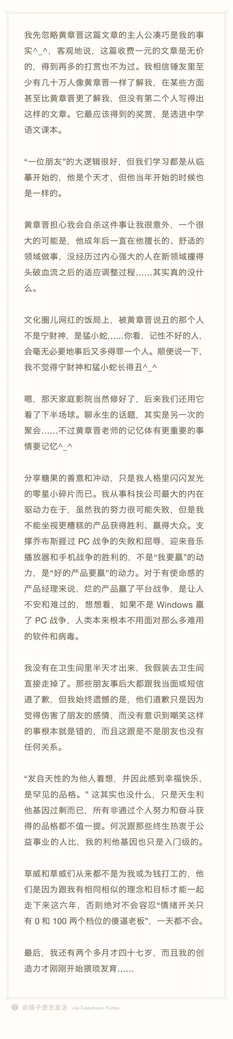 昨日晚间,锤子科技CEO罗永浩在微博回复黄章晋一篇付费回答时称,“我从事科技公司最大的内在驱动力在于,虽然我的努力很可能失败,但是我不能坐视更糟糕的产品获得胜利、赢得大众。支撑乔布斯捱过PC战争的失败和屈辱,迎来音乐播放器和手机战争的胜利的,不是‘我要赢’的动力,是‘好的产品要赢’的动力。”罗永浩最后表示,“我还有两个多月才四十七岁,而且我的创造力才刚刚开始猥琐发育。”