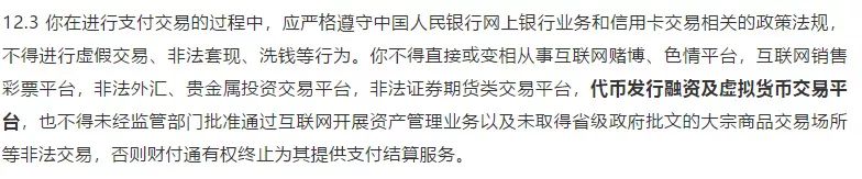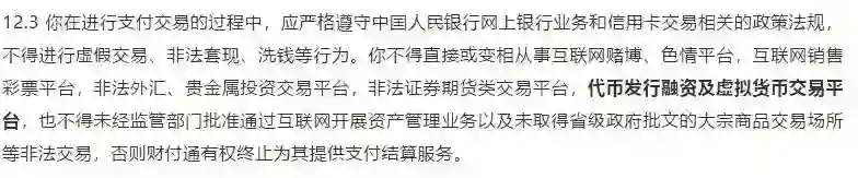 微信支付近日修改其服务协议,在新修协议中增设一项说明,明确表示禁止将微信支付用于“代币发行融资及虚拟货币交易平台”,违者微信支付将“终止其协议”。(火星财经)
