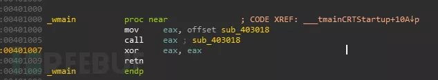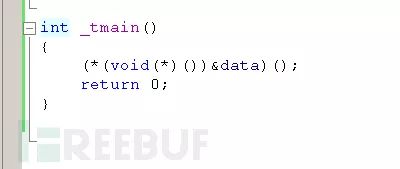 然后在main函数中定义函数指针指向shellcode的首地址,然后调用这个shellcode首地址的这个函数,读起来很绕,但实际上一条指令就能够完成: