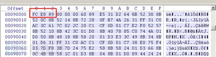 589824,转换成十六进制为0x90000,应该就是要找的上下文地址,接下来就是到进程内存中去找到这一段数据了,使用WinHex打开对应进程的内存,找到0x90000这个地址: