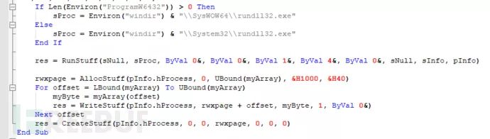 脚本病毒/宏病毒注入shellcode时所使用的函数与PE类略有不同,下面以一个宏病毒的分析过程为例来进行说明。