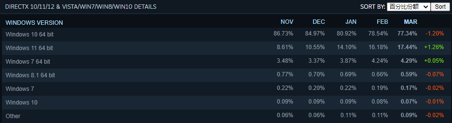 自去年 10 月发布至今,只有 17.44% 的 Steam 用户选择采用 Windows 11。