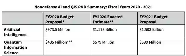 2020-2021美国在非国防人工智能和量子信息科学方面的研发支出总结