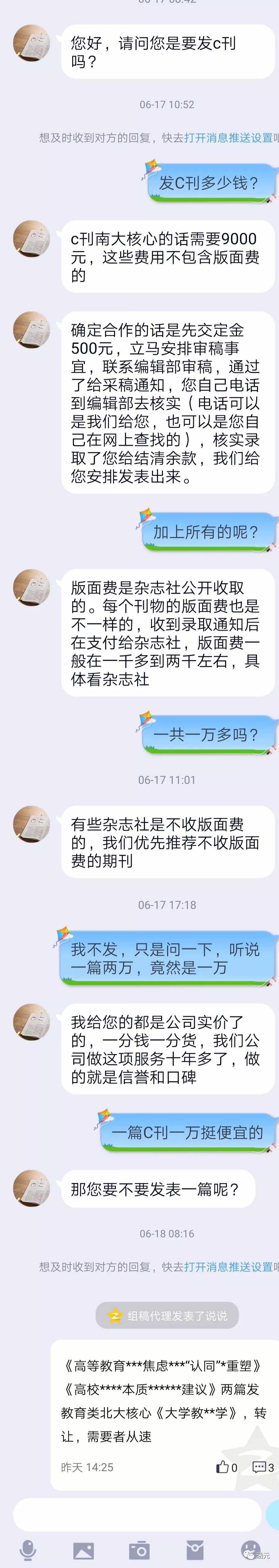 据知情者透露,在一些学术实力较差的地方院校(这样的院校每个地级市就有两三所),发论文几乎全部靠买。因为理工科一般以发表SCI等国际刊物为评职称参考依据,这种以次充好贩卖版面的行为,在文科中尤为严重。一篇论文,普刊几百到上千块,南京大学核心论文(CSSCI)或者北大核心则两万到四五万块不等。