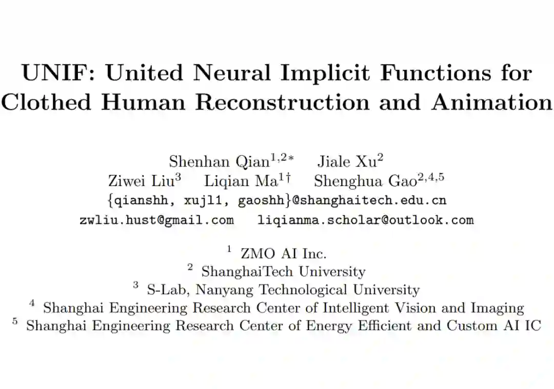 为此,上海科技大学和 ZMO.AI 的研究者提出了一套分部件人体重建和驱动的方法 UNIF,借助简洁有效的初始化和正则化手段,使分部件重建方法摆脱对部件划分标签的依赖。通过显式地建模部件之间的相互作用,显著提升了分部件重建方法对人体姿态的泛化能力。ZMO.AI 是国内头部内容生成初创公司,专注于 AI 文字生成内容 Yuan初 创作平台的搭建。该论文已被 ECCV 2022 接收,并公开了代码。