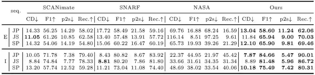 相比于上述整体建模的方式,分部件重建的方法尚缺乏探索。这类方法为人体的每个部分学习一个独立的全连接网络(MLP),将每个网络表达的形状绑定在各个骨骼上,能够更好地保持形体的局部刚性。但是,分部件重建的方法往往需要部件划分的标注数据,在应用场景上受限;同时,部件之间的融合很困难,不可避免地出现部件的重叠或断裂,在动作泛化能力上始终劣于整体重建的方法。