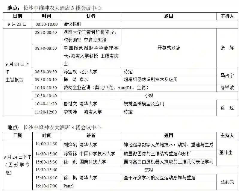 讲者简介:徐凯,国防科技大学教授。国家优青,湖南省杰青。普林斯顿大学访问学者,西蒙弗雷泽大学客座教授。研究方向为数据驱动的三维感知与建模、三维视觉及其机器人应用等。发表CCF A类论文60余篇,其中包括领域顶级会议和期刊ACM SIGGRAPH/Transactions on Graphics论文27篇。担任图形学顶级期刊ACM Transactions on Graphics,以及重要期刊Computer Graphics Forum、Computers and Graphics、The Visual Computer等的编委。担任GMP 2023等国际会议的论文共同主席,以及SIGGRAPH、Eurographics等会议的程序委员。担任中国图象图形学学会三维视觉专委会副主任,中国工业与应用数学学会几何设计与计算专委会秘书长,中国图学学会理事。获湖南省自然科学一等奖2项(排名第1和第3)、中国计算机学会自然科学一等奖(3)、军队科技进步二等奖等。