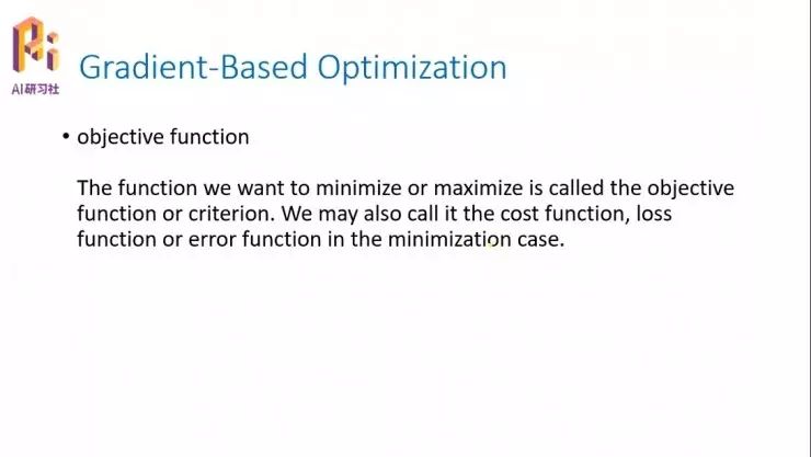 这是 Deep Learning 书中关于一些基本函数的定义,包括 objective funtion 目标函数,或者也可以称为损失函数,或者也可以称为误差函数。这时候我们一般都是要求它的最小值,让误差或者损失尽量的小。