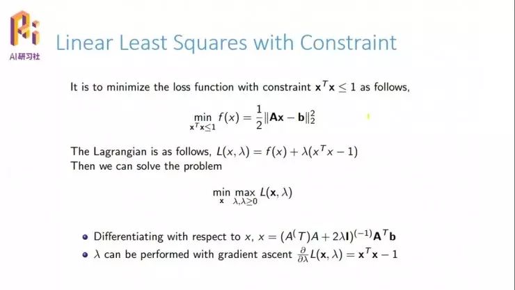 基本上就是求逆的操作。λ满足的一个梯度条件是,把它看作单变量,对它求导,它的导数需要满足
