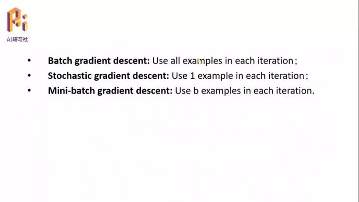 这两个方法就有点矛盾,一个是计算量大,但是全局最优,收敛比较快;一个是计算量小,但是收敛比较慢,只能找到最优目标值的附近。所以又产生了一种调和的算法,叫做小批量梯度下降,Mini-Batch Gradient Descent。其实很简单,既不像批量用到所有的特征去更新权值,也不像随机梯度下降只用其中一个,我选取一部分,假设每个样本有 100 个特征,我只取其中的 10 个特征用于每一次的权值更新。那么首先它的计算量是下降的,其次它也并不是仅仅按照其中某一个、而是它是按照了 10 个特征向量所在的方向进行搜索,既保证了搜索速度,又保证了计算量,这是目前在梯度下降中用的比较多的一个方法,算是一个 BGD 和 SGD 两种方法的折中方法。