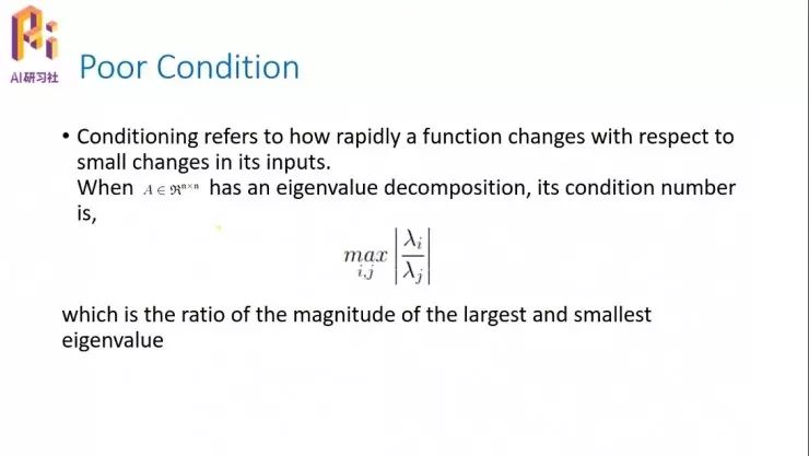 有一个一般的办法判断矩阵是否病态,就是把矩阵 A 所有的特征值λ求出来以后,然后把所有λ里的最大的值除以最小值,然后取它的模。我们根据这个值可以判断一个矩阵是否是病态矩阵。