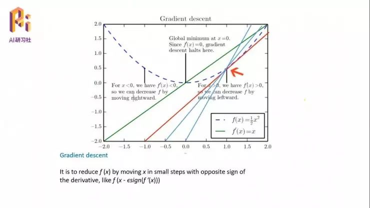 然后就是梯度下降的意义,就是我们找了一个什么样的方向去接近目标函数,有了方案以后我们应该怎么走,每一步应该走多少;有时候你走的过大的话,也会导致系统的发散。