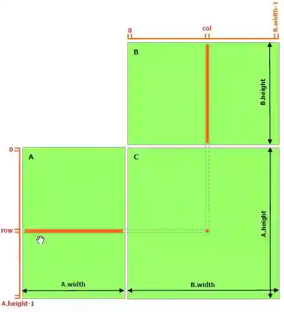 Cvalue += getElement(A, row, i) * getElement(B, i, col);