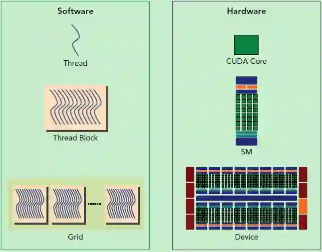 还有重要一点,你需要对GPU的硬件实现有一个基本的认识。上面说到了kernel的线程组织层次,那么一个kernel实际上会启动很多线程,这些线程是逻辑上并行的,但是在物理层却并不一定。这其实和CPU的多线程有类似之处,多线程如果没有多核支持,在物理层也是无法实现并行的。但是好在GPU存在很多CUDA核心,充分利用CUDA核心可以充分发挥GPU的并行计算能力。GPU硬件的一个核心组件是SM,前面已经说过,SM是英文名是 Streaming Multiprocessor,翻译过来就是流式多处理器。SM的核心组件包括CUDA核心,共享内存,寄存器等,SM可以并发地执行数百个线程,并发能力就取决于SM所拥有的资源数。当一个kernel被执行时,它的gird中的线程块被分配到SM上,一个线程块只能在一个SM上被调度。SM一般可以调度多个线程块,这要看SM本身的能力。那么有可能一个kernel的各个线程块被分配多个SM,所以grid只是逻辑层,而SM才是执行的物理层。SM采用的是SIMT(链接:http://docs.nvidia.com/cuda/cuda-c-programming-guide/index.html#simt-architecture)(Single-Instruction, Multiple-Thread,单指令多线程)架构,基本的执行单元是线程束(wraps),线程束包含32个线程,这些线程同时执行相同的指令,但是每个线程都包含自己的指令地址计数器和寄存器状态,也有自己独立的执行路径。所以尽管线程束中的线程同时从同一程序地址执行,但是可能具有不同的行为,比如遇到了分支结构,一些线程可能进入这个分支,但是另外一些有可能不执行,它们只能死等,因为GPU规定线程束中所有线程在同一周期执行相同的指令,线程束分化会导致性能下降。当线程块被划分到某个SM上时,它将进一步划分为多个线程束,因为这才是SM的基本执行单元,但是一个SM同时并发的线程束数是有限的。这是因为资源限制,SM要为每个线程块分配共享内存,而也要为每个线程束中的线程分配独立的寄存器。所以SM的配置会影响其所支持的线程块和线程束并发数量。总之,就是网格和线程块只是逻辑划分,一个kernel的所有线程其实在物理层是不一定同时并发的。所以kernel的grid和block的配置不同,性能会出现差异,这点是要特别注意的。还有,由于SM的基本执行单元是包含32个线程的线程束,所以block大小一般要设置为32的倍数。