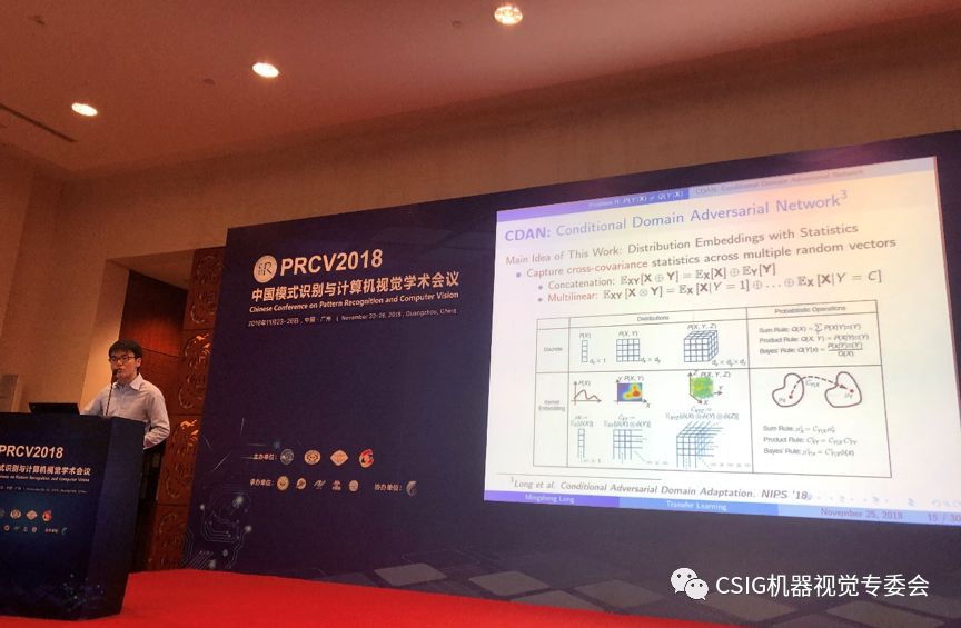 清华大学龙明盛助理教授在题为“跨数据和任务域深度学习泛化研究”的报告中,给大家系统阐述了在深度学习大背景下,迁移学习的演化进展。龙老师从迁移学习的基本假设和实现迁移学习的理论目标出发,给大家介绍了自己近年来在这方面的一系列工作,并详细讲解了“条件域对抗训练”方法及背后的理论基础。龙老师的报告引起与会听众的热烈掌声。