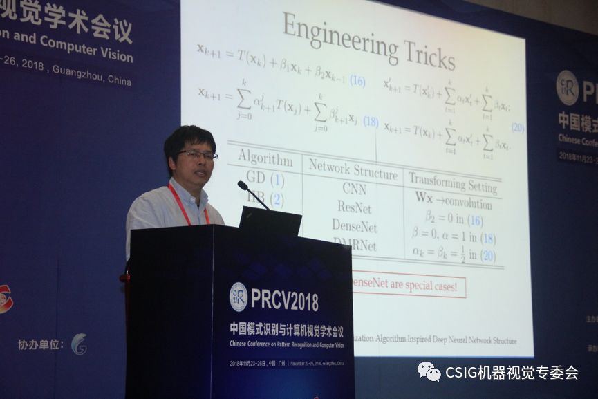 北京大学林宙辰教授在题为“优化算法启发的深度神经网络设计”的报告中,指出ISTA、ADMM等经典优化算法不仅仅是优化工具,它们还可以用于设计深度神经网络。林教授进一步介绍了最近他在这方面的工作进展,尤其是如何从一阶优化算法启发深度神经网络设计,并指出这样设计的网络和现有经典网络模型的关系。林教授的报告让听众对深度模型的优化和模型设计等有了更深入的思考。