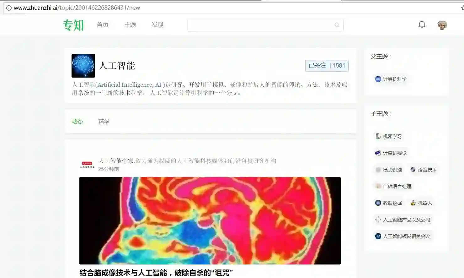 专知,为人工智能从业者提供专业可信的AI知识分发服务;请登录www.zhuanzhi.ai或者点击阅读原文,顶端搜索“人工智能” 主题,直接获取查看获得关于机器学习更多的知识资料,包括链路荟萃动态资讯精华文章等资料,帮助你更好获取机器学习知识!如下图所示。