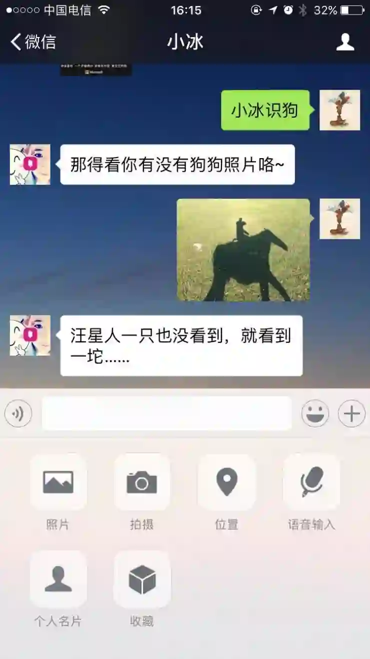 正常的逻辑中,用户的发给小冰的应该是一张狗的照片,可是有的用户可能就是发了一张不是狗的照片,如下所示,那么这个时候就是边界case,需要额外处理。用户发来的可能是语音、文字、其他任何照片,每一种的处理都是需要单独设计的。