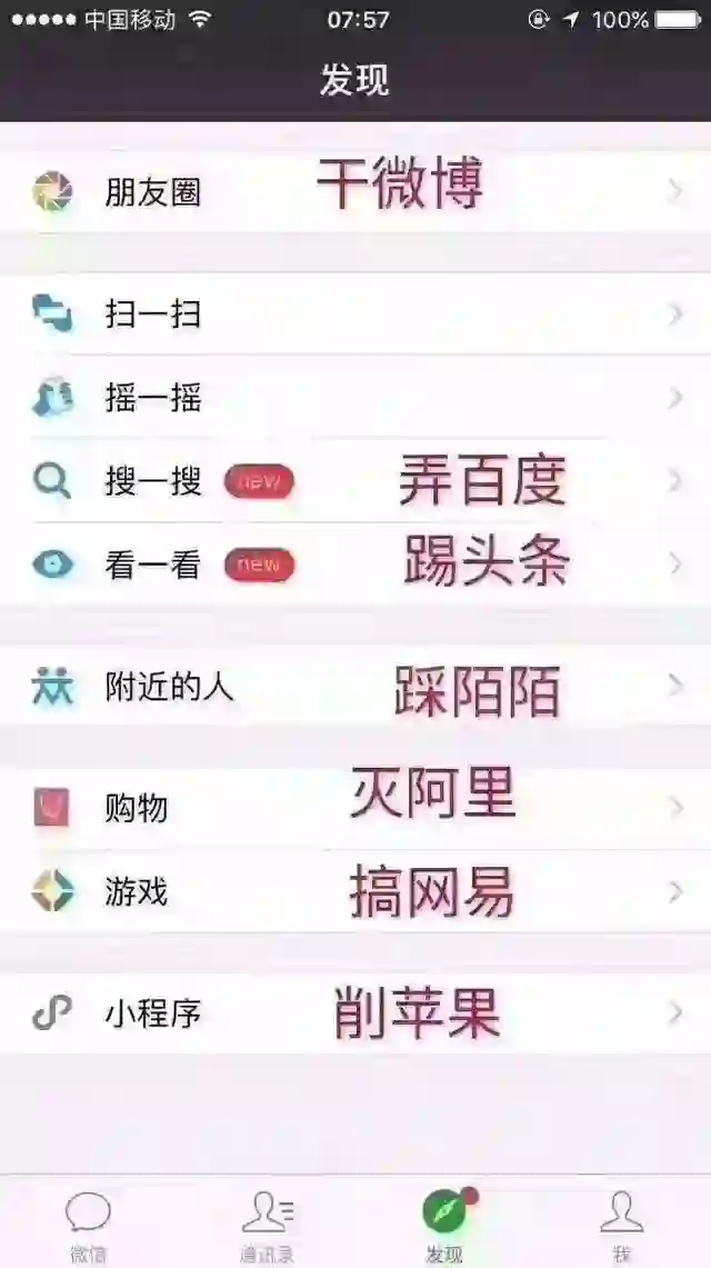微信“发现”页面网络神图