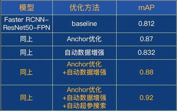继续把自动超参搜索应用到本案例中,效果从0.88提升到0.92。总体来说,我们通过一系列的效果优化,从最初的0.812提升到了现在的0.92,效果上非常可观。