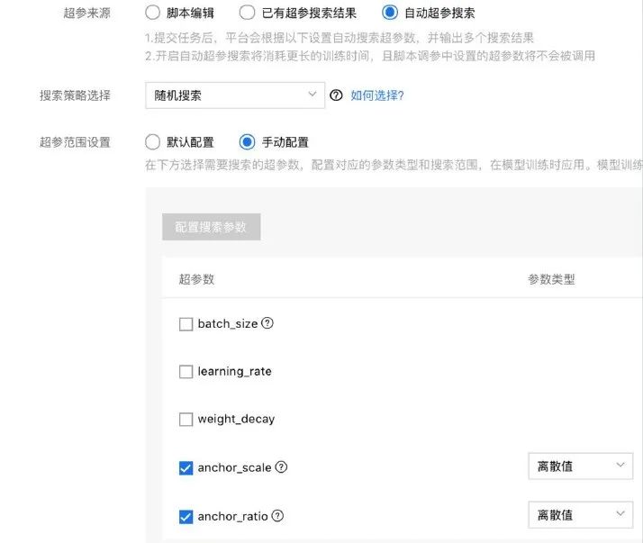 其缺点是比较耗费计算资源。但是相关算法能力已经在EasyDL专业版集成,用户可以通过EasyDL专业版创建项目,实现自动超参搜索。